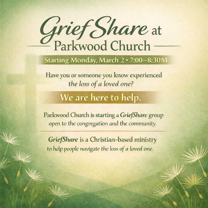 We are here to help. Parkwood Church is starting a GriefShare group that is open to the congregation and to the community. GriefShare is a Christian-based church ministry program to help people deal with the loss of a loved one.